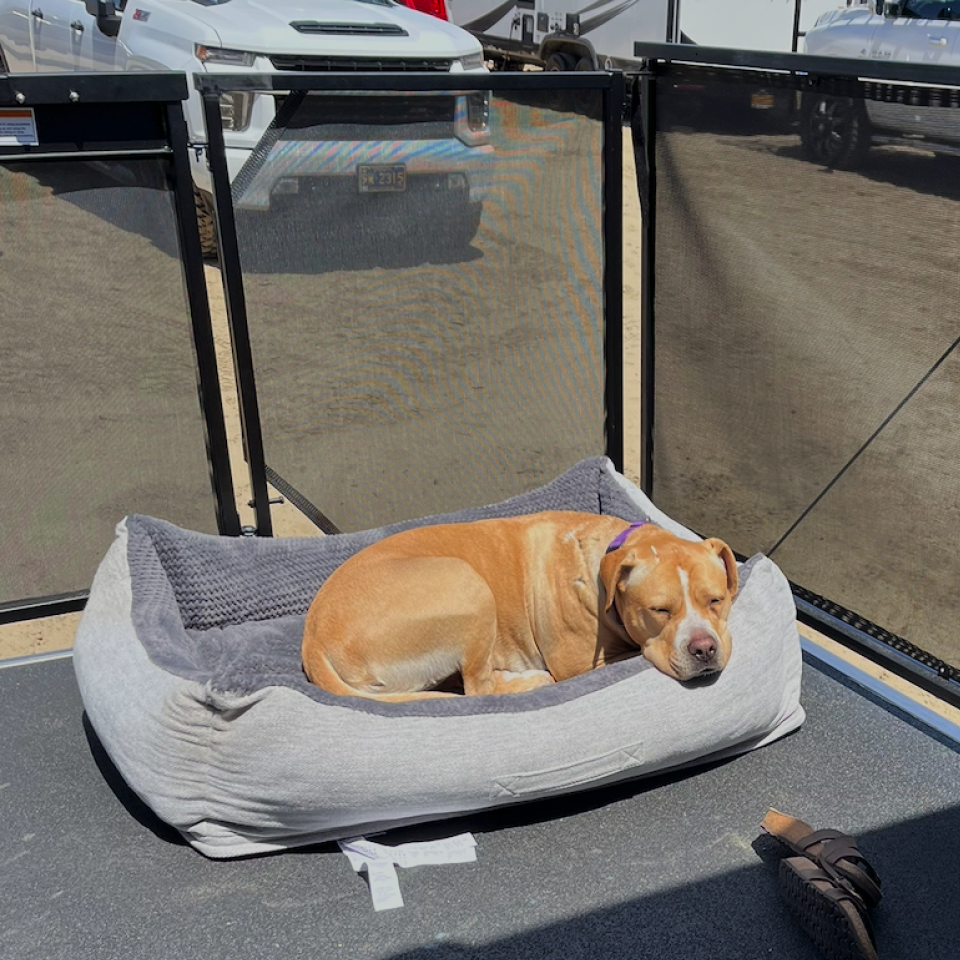Morgan's journey began in Tulare, California, where she was brought to a shelter as a stray. To everyone’s surprise, this sweet girl was pregnant. She quickly proved herself to be an incredible mom, raising three adorable puppies who were all adopted into loving homes. But while her puppies found their futures, Morgan’s time at the shelter ran out—she was placed on the euthanasia list.